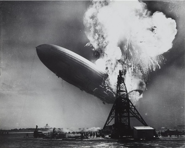 - While attempting to dock, the Hindenburg catches fire and is completely destroyed.