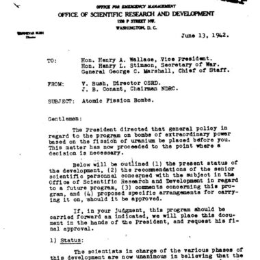 Harrison-Bundy Files on Atomic Bomb Development, War Department