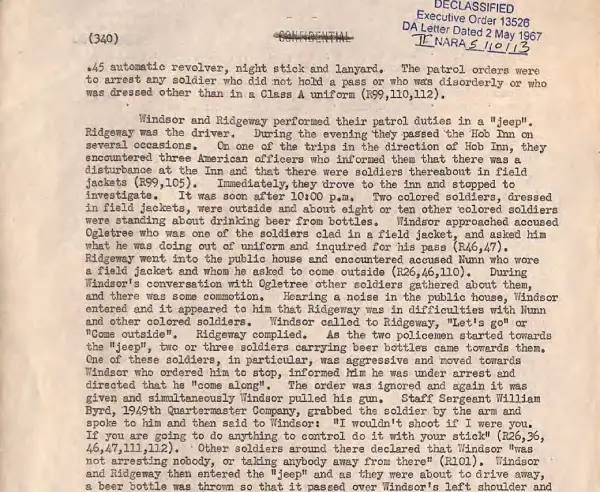 - Lynn M. Adams, et al. (Defendants in ETO 804): A group of Black servicemen who were among the four initially convicted in the first courts martial related to the initial brawl at Ye Olde Hob Inn. They faced charges related to the disturbance, with sentences including hard labor and dishonorable discharges (one conviction later overturned).